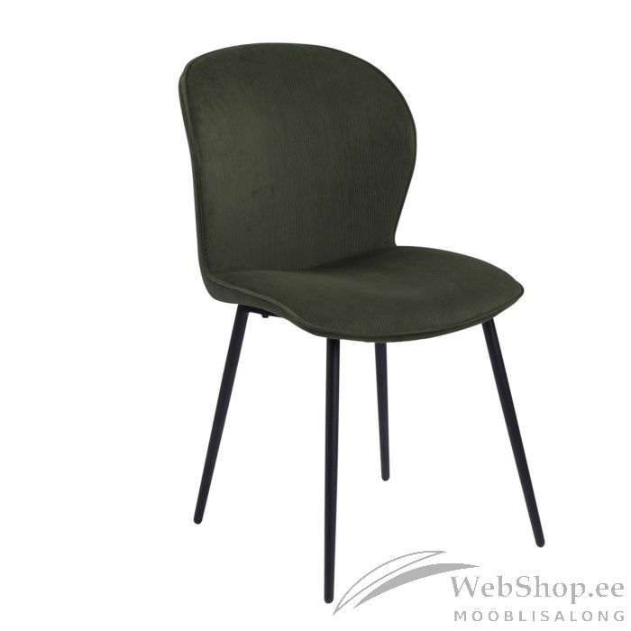 Tooli kumerused lisavad sellele moodsa ilme. Orgaanilise kujuga istmel on dekoratiivsed detailid, mis suurendavad tooli iseloomu. Toolil on kitsenevad mustast terasest jalad ja mugav iste. Tool lisab söögituppa kaasaegset hõngu. Tool on kaetud kangaga, 100% polüester, Martindale: > 25 000. Istumiskõrgus 46,5cm. Kaalupiirang: 110kg. Mõõdud 43x59xH82cm.