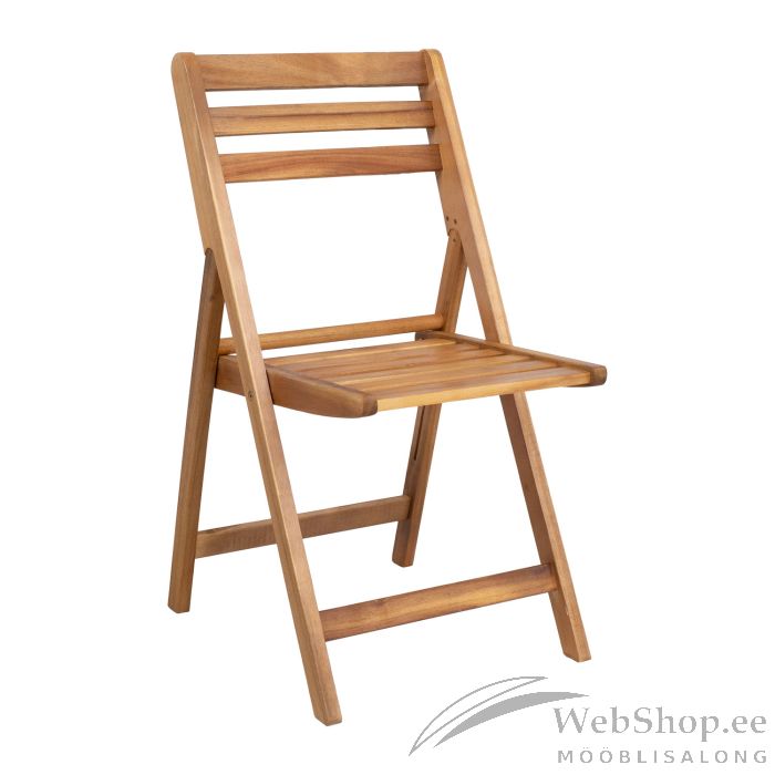 Kokkupandav tool FERDY akaatsia. Tool on valmistatud akaatsiapuidust ja viimistletud puidukaitseõliga. Tooli üldmõõdud on 42x54xH83cm. Kaalupiirang 90kg. HOOLDUS: puit on elav looduslik materjal, mille välisilme ilmastikutingimuste tõttu muutub. Puhastage mööblit regulaarselt, kaitske liigniiskuse ja UV kiirguse eest. Kerge lihvimine ja uus õlikiht vähemalt korra aastas on piisav värskenduskuur mööblile uue näo andmiseks. HOIUSTAMINE: suvehooaja lõppedes soovitame aiamööblit hoiustada siseruumides. Puhastage ja kuivatage mööbel enne hoiule panekut. Kasutage hoiustamiseks kuiva ning hea ventilatsiooniga ruumi. Kaitske mööblit hoiustamise ajal otsese päikesevalguse eest.
