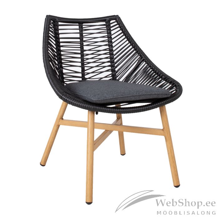 Tool HELSINKI must. Aiatoolid on mugav lahendus rõdule, terrassile või aeda istumisala loomiseks. Valides juurde sobiv laud, on võimalik kujundada hubane ala, kus päeval kaunist ilma nautida või õdusaid õhtuid veeta. Tooli alumiiniumraam on kaetud musta plastikust nöörpunutisega. Komplekti kuulub mugav istmepadi. Padi on kaetud tumehalli polüesterkangaga. Tooli alusraam ja jalad on värvitud tiikpuidu tooni. Tooli mõõdud on 64x65xH84cm.
