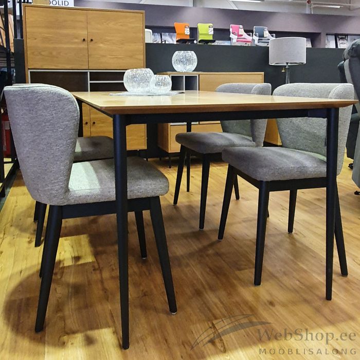 Tooli iste ja seljatugi on polsterdatud ja kaetud polüesterkangaga. Tooli jalad ja alusraam on valmistatud täispuidust ja viimistletud musta värviga. Kaalupiirang 100kg.
