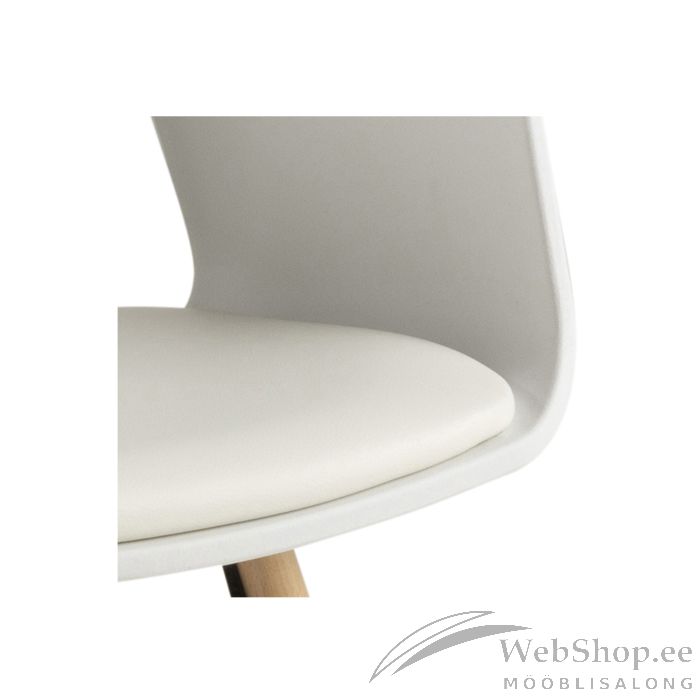 Söögitoolil on toetav seljatugi, käetoed ja pehme polsterdatud iste, mis tagavad tõeliselt mugava istumise. Avatud seljatugi täiendab disaini. Samuti suurendavad ristatud metalltorud tooli visuaalset huvi, hoides seda samal ajal stabiilsena. Tool on valmistatud plastikust. Istet katab kunstnahk. Jalad on valmistatud lakitud pöögist. Kaalupiirang on 110kg. Mõõdud on 51,5x52xH80,5cm.