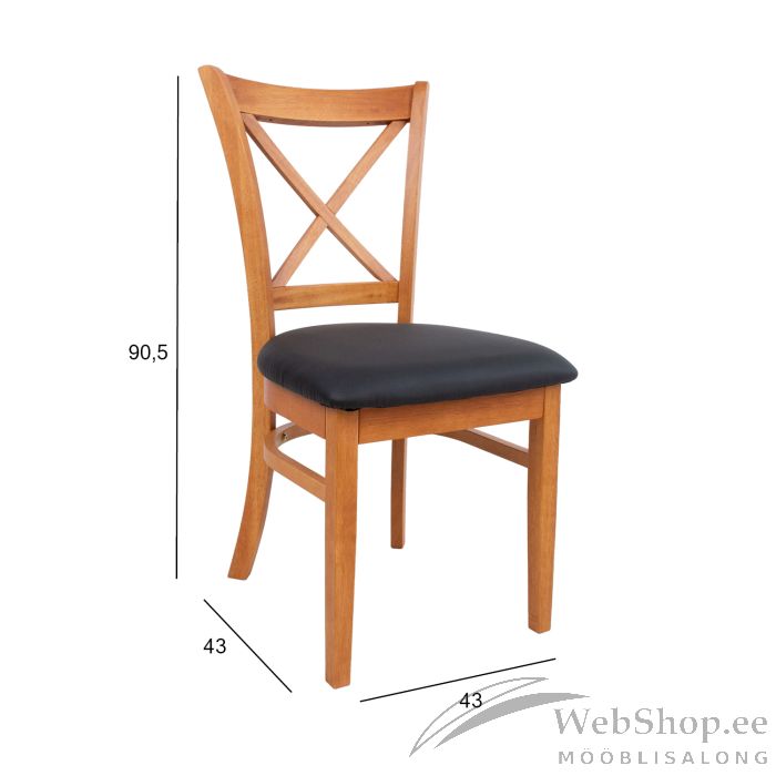 Tool MIX &MATCH 43x43xH90,5cm. Musta kunstnahaga kaetud polsterdatud iste. Kummipuust jalad ja raam on viimistletud heleda tammetoonis lakiga. Kaalupiirang 100kg.