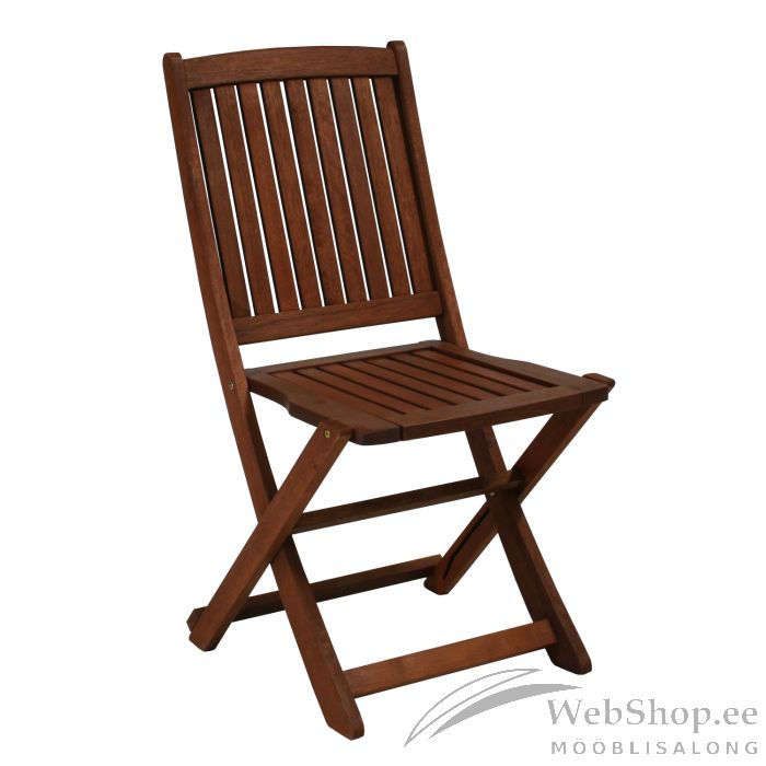 Tool MODENA pruun. Klassikalised täispuidust toolid on maitsekas valik aeda või terrassile. Sobitades juurde laud, on võimalik kujundada hubane ala, kus päeval kaunist ilma nautida või õdusaid õhtuid veeta. Kombineerides samast materjalist valmistatud ja ühesuguse viimistlusega tooteid, saab luua endale meelepärase ja harmoonilise komplekti. Tooli juurde on võimalik sobitada sama tooni laud koodiga 08532. Tool on valmistatud merantipuidust ning on õliviimistlusega. Tool on kokkupandav, mistõttu võtab toode vähem ruumi ja on lihtsasti hoiustatav. Toode on muutlikes ilmastikuoludes vastupidav. Tooli kaalupiirang on 90kg ja mõõdud on 47x56,5xH91cm. HOOLDUS: puit on elav looduslik materjal, mille välisilme ilmastikutingimuste tõttu muutub. Puhastage mööblit regulaarselt, kaitske liigniiskuse ja UV kiirguse eest. Kerge lihvimine ja uus õlikiht vähemalt korra aastas on piisav värskenduskuur mööblile uue näo andmiseks.