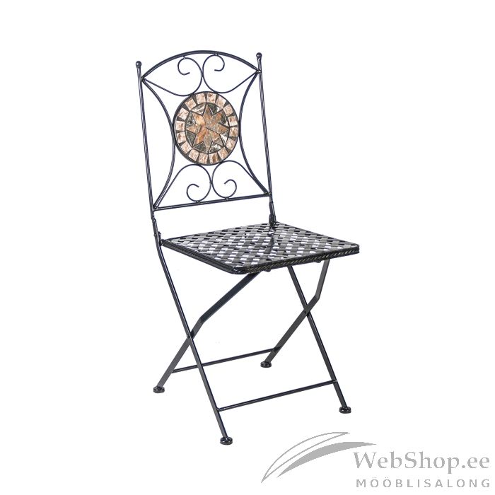 Tool MOSAIC kandiline pruun. Aiatoolid on mugav ja ruumi säästev lahendus väiksemale terrassile või rõdule. Valides juurde sobiv laud, on võimalik luua hubane ala, kus päeval kaunist ilma nautida või õdusaid õhtuid veeta. Tooli juurde saab kombineerida samas stiilis laua koodiga 38664 või 38668, et moodustada harmooniline komplekt. Tooli iste ja seljatugi on kandilised. Toolil on metallist raam, mis on musta värvi. Tool on kokkupandav, mis muudab selle hoiustamise lihtsaks. Tooli kaalupiirang on 90kg ja mõõdud on 36x36xH70cm.