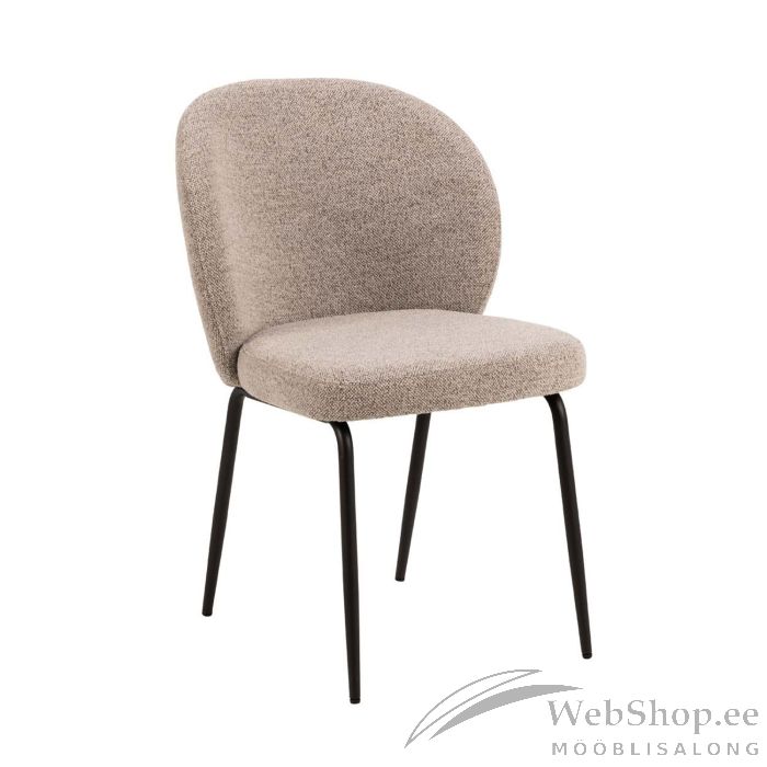 Elegantne ja kaasaegne söögitool. Trendikas ja luksuslik bukleekangas on pehme ja hea vastupidavusega. Tugev pulbervärvitud metallist alus. Seljatoe tagaküljel on lukk. Toote mõõdud on 52x57,5xH82cm.