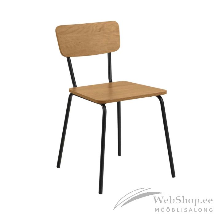 Selgete joontega tool sobib ideaalselt nii kaasaegsetesse kui ka traditsioonilistesse ruumidesse. Metsiku tamme välimusega iste ja seljatugi on ühendatud peene musta metallpõhjaga. Tulemuseks on moodne kombinatsioon, mis mõjub samal ajal rustikaalselt. Mõõdud on 45,6x52,5xH75cm. HOOLDUS: Üldiselt vajavad kõik melamiinpinnad minimaalset hooldust. Kasutage seebiveest kuivaks väänatud lappi ja pühkige pind kuivaks. Vältige küürimispulbri või nailonkäsnade kasutamist, kuna need pleegivad või kriimustavad laminaati. Alus: Kasutage igapäevaseks puhastamiseks seebiveest kuivaks väänatud lappi. Rooste vältimiseks pühkige pind kuivaks. Ärge hõõruge pinda kõvade esemetega.