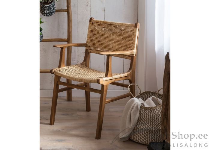 Naturaalsest tiikpuust ning rotangist tool. Valmistatud Indoneesias.