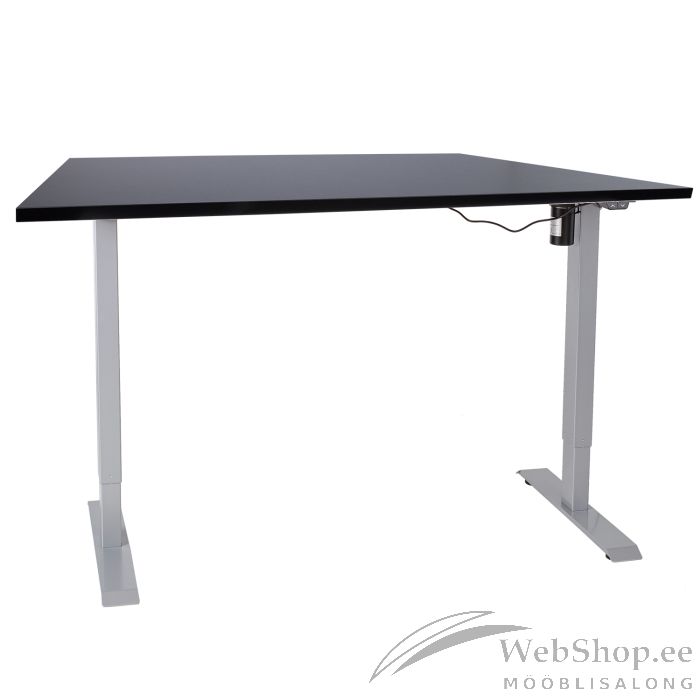 Töölaud ERGO 1-mootoriga 140x80cm, must/hall. Muuda oma töökeskkond mugavaks ja hoia tervist! Vaheldumisi püsti- ja isteasendis töötamine aitab ennetada kaela- ja seljavalusid. Püsti töötades kulutab inimene minutis 0,7 kalorit rohkem kui istudes. Üks elektrimootor ja kahefaasiline tõstesüsteem tagavad kiire, sujuva ja vaikse (<50dB) liikumise. Maksimaalne tõstekiirus 25mm sekundis. Laua kõrgust on võimalik muuta vahemikus 71-121cm. Lauajala laius on reguleeritav vahemikus 85-129cm. Maksimaalne kandevõime täiskiirusel 70kg. Sisendpinge: 100V-240V. Melamiinlauaplaat 140x80cm, paksus 25mm. Dekoor: must. Toote mõõdud on 140x80xH71-121cm. Enne toote kasutamist lugege hoolikalt juhendit ning hoidke see alles.