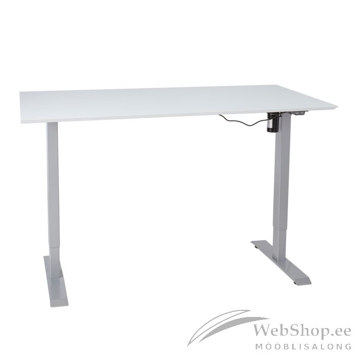 Töölaud ERGO 1-mootoriga 160x80cm, hallikasvalge. Muuda oma töökeskkond mugavaks ja hoia tervist! Vaheldumisi püsti- ja isteasendis töötamine aitab ennetada kaela- ja seljavalusid. Püsti töötades kulutab inimene minutis 0,7 kalorit rohkem kui istudes. Üks elektrimootor ja kahefaasiline tõstesüsteem tagavad kiire, sujuva ja vaikse (<50dB) liikumise. Maksimaalne tõstekiirus 25mm sekundis. Laua kõrgust on võimalik muuta vahemikus 71-121cm. Lauajala laius on reguleeritav vahemikus 85-129cm. Maksimaalne kandevõime täiskiirusel 70kg. Sisendpinge: 100V-240V. Melamiinlauaplaat 160x80cm, paksus 25mm. Dekoor: hallikasvalge. Toote mõõdud on 160x80xH71-121cm. Enne toote kasutamist lugege hoolikalt juhendit ning hoidke see alles.