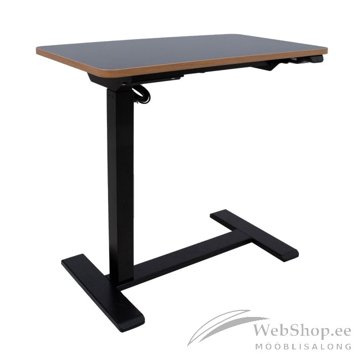 Töölaud ERGO 1-mootoriga 70x40cm, must. Mobiilne ja kompaktne, elektriliselt reguleeritav töölaud ERGO sobib ideaalselt nii koju kui kontorisse. Tänu peidetud ratastele on töölaud lihtsalt teisaldatav ja C-jalg võimaldab paigutada laua nii, et tööd teha võib ka voodis või diivanil istudes. Üks elektrimootor ja kahefaasiline tõstesüsteem tagavad kiire, sujuva ja vaikse (<50dB) liikumise. Tõstekiirus 30mm/s. Laua kõrgust on võimalik muuta vahemikus 65-103cm. Kahe nupuga lihtne juhtpaneel. Maksimaalne kandevõime täiskiirusel 20kg. Sisendpinge: 100V-240V. 70x40cm tumepruun melamiinkattega lauaplaat. Topelt nelikanttorudest teraskonstruktsioon tagab lauajala stabiilsuse ka kõige kõrgemal positsioonil. Metallist osad on kaetud musta pulbervärviga. Toote mõõdud on 70x40xH65-103cm. Enne toote kasutamist lugege hoolikalt juhendit ning hoidke see alles.