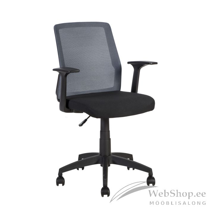 Töötool ALPHA must/hall. Iste on kaetud musta polüesterkangaga. Seljatugi on kaetud halli polüestervõrkkangaga. Tooli raam ja käetoed on mustast plastikust. Istme kõrgus on reguleeritav gaasamordi abil. Jalarist on mustast plastikust. Toolil on plastikrattad, tihvt: 11mm. Tooli kõrgus on 87,5-95cm. Toote mõõdud on 60x55xH87,5-95cm. Tooli kaalupiirang on 120kg.