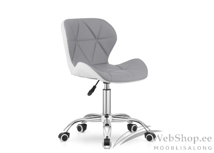 Ergonoomilise seljatoega töötool on kaetud kunstnahaga. Istme kõrgus on reguleeritav gaaspumpmehhanismi abil vahemikus 41,5-53 cm. Kroomitud metallist jalad, kummikattega plastrattad. Värvus: hall/valge.