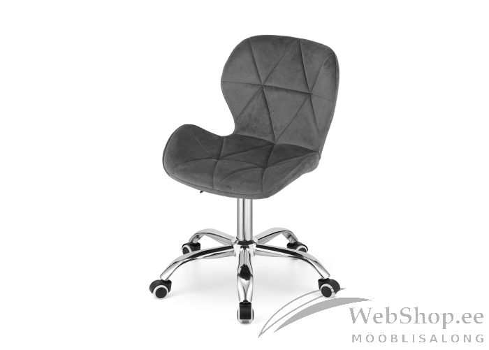 Ergonoomilise seljatoega töötool on kaetud pehme veluurkangaga. Istme kõrgus on reguleeritav gaaspumpmehhanismi abil vahemikus 41,5-53 cm. Kroomitud metallist jalad, kummikattega plastrattad. Värvus: tumehall.