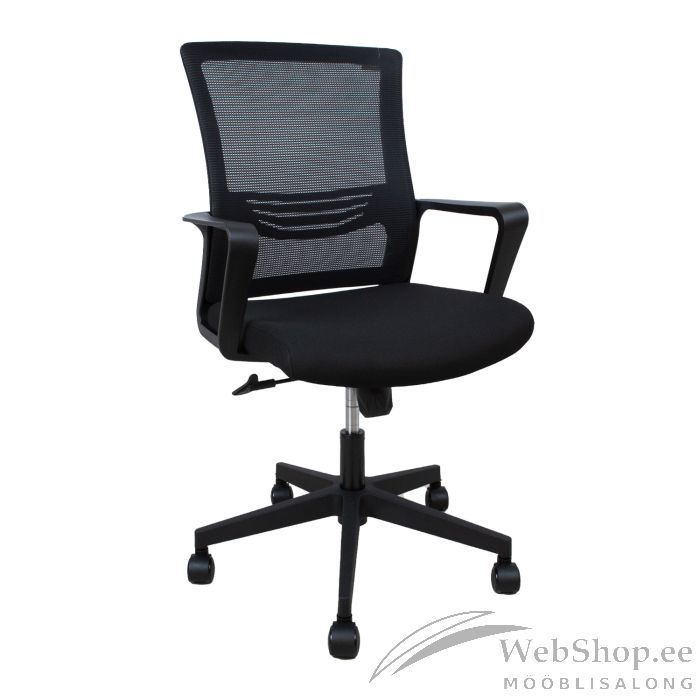 Töötool EMMA must. Tooli seljatugi on kaetud polüestervõrkkangaga. Kergelt polsterdatud iste on kaetud polüesterkangaga. Seljatoeraam ja käetoed on valmistatud mustast plastikust. Toolil on kiikemehhanism mehhanism, seljatoe kaldenurk on lukustatav. Istme kõrgus on reguleeritav gaasamordi abil. 5-haruline jalarist on musta värvi plastikust, R32cm. Toolil on plastikrattad, 50mm. Tooli üldmõõdud on 57x65x98-104cm. Istme laius on 47cm ja sügavus 49cm. Istme kõrgus 47-53cm. Kaalupiirang 136kg.