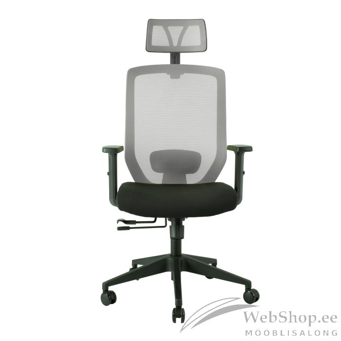 Töötool JOY must/hall. Iste on kaetud on polüesterkangaga. Selja- ja peatugi on kaetud polüestervõrkkangaga. Ergonoomilise disainiga seljatoeraam on valmistatud mustast plastikust. Toolil on multifunktsionaalne mehhanism, lukustatav kolmes positsioonis. Reguleeritav nimmetugi. Istme sügavus on reguleeritav 4,5cm ulatuses. Istme kõrgus on reguleeritav gaasamordi abil. Mustast plastikust käetoed on pehme polüuretaankattega. Käetugede ja peatoe kõrgus on reguleeritav. 5-haruline jalarist on musta värvi plastikust, R34cm. Toolil on plastikrattad, 60mm. Tooli kõrgus on 115-125cm, istme laius 50cm, sügavus 50cm, istme kõrgus 46-56cm. Toote mõõdud on 64x64xH115-125cm. Tooli kaalupiirang on 120kg.