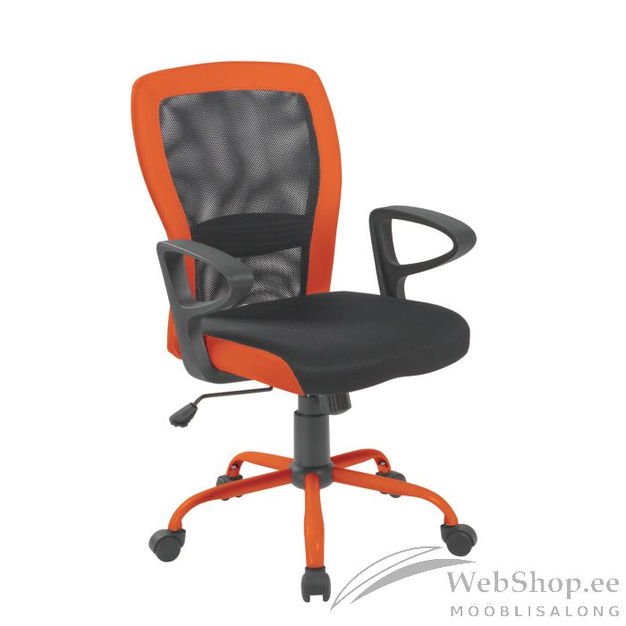 Töötool LENO hall/oranž. Iste ja seljatugi on kaetud halli polüestervõrkkangaga. Ääred on oranži värvi kunstnahast. Toolil on kiikemehhanism. Kiike jäikus on reguleeritav vastavalt istuja kaalule. Istme kõrgus on reguleeritav gaasamordi abil. Käetoed on musta värvi plastikust. Jalarist on oranži värvi terasest, R30cm. Toolil on plastikrattad, tihvt: 11mm. Tooli kõrgus on 91-98,5cm, istme kõrgus 46-53,5cm, istme sügavus 47cm, istme laius 47cm. Toote mõõdud on 60x57xH91-98,5cm. Tooli kaalupiirang on 120kg.