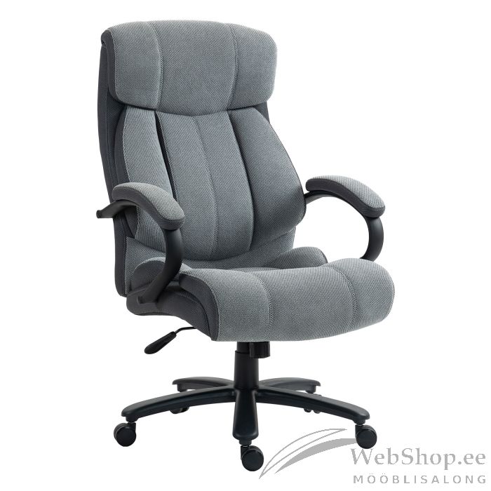 Tooli pehme polsterdusega iste ja seljatugi on kaetud halli polüesterkangaga, külgedel on kasutatud polüestervõrkkangast.