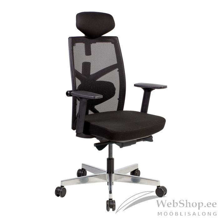 Töötool TUNE must. Iste on kaetud polüesterkangaga, 50 000 Martindale’i. Seljatugi on kaetud polüestervõrkkangaga. Tooli plastikkorpus on musta värvi. Toolil on kiikemehhanism, lukustamine mitmes positsioonis ja automaatne kiike jäikuse reguleerimine. Seljatoe kõrgus on reguleeritav vahemikus 50-60,5cm, istme sügavus vahemikus 44-48cm. Istme kõrgus on reguleeritav gaasamordi abil. Reguleeritav nimmetugi. Mustad plastikust käetoed on kolmes suunas reguleeritavad. Käetugede kõrgus on reguleeritav vahemikus 20,5-30,5cm. Käetugede toetuspinda saab lükata ette-taha ja muuta pöördenurka sisse-välja. Peatugi on vabalt kallutatav 30°, peatoe kõrgus reguleeritav. Toolil on alumiiniumist 5-haruline jalarist, D70cm. Toolil on põrandat säästvad piduritega rattad, 65mm. Tooli kõrgus on 111-128cm, istme kõrgus 45,5-55,5cm, istme sügavus 44-48cm, istme laius 49cm. Toote mõõdud on 70x70xH111-128cm. Tooli kaalupiirang on 120kg.
