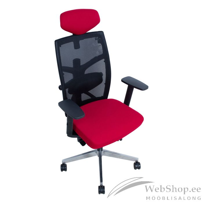 Töötool TUNE tumepunane/must. Iste on kaetud polüesterkangaga, 50 000 Martindale’i. Seljatugi on kaetud polüestervõrkkangaga. Tooli plastikkorpus on musta värvi. Toolil on kiikemehhanism, lukustamine mitmes positsioonis ja automaatne kiike jäikuse reguleerimine. Seljatoe kõrgus on reguleeritav vahemikus 50-60,5cm, istme sügavus vahemikus 44-48cm. Istme kõrgus on reguleeritav gaasamordi abil. Reguleeritav nimmetugi. Mustad plastikust käetoed on kolmes suunas reguleeritavad. Käetugede kõrgus on reguleeritav vahemikus 20,5-30,5cm. Käetugede toetuspinda saab lükata ette-taha ja muuta pöördenurka sisse-välja. Peatugi on vabalt kallutatav 30°, peatoe kõrgus reguleeritav. Toolil on alumiiniumist 5-haruline jalarist, D70cm. Toolil on põrandat säästvad piduritega rattad, 65mm. Tooli üldmõõdud on 70x70xH111-128cm. Tooli kõrgus on 111-128cm, istme kõrgus 41,5-51,5cm, istme sügavus 44-48cm, istme laius 49cm. Kaalupiirang 120kg.