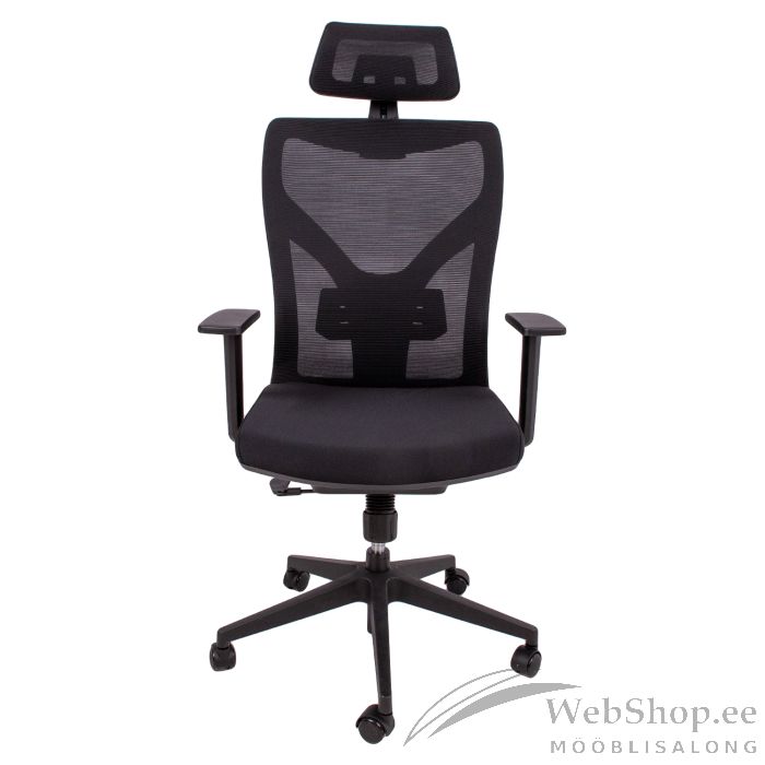 Töötool VENON must. Iste on kaetud musta polüesterkangaga, 50 000 Martindale'i. Selja- ja peatugi on kaetud polüestervõrkkangaga, 30 000 Martindale'i. Toolil on kiikemehhanism, lukustatav ühes positsioonis. Reguleeritav nimmetugi. Istme kõrgus on reguleeritav gaasamordi abil. Plastikust korpus ja seljatoe raam on musta värvi. Käetoed on fikseeritud. Peatoe kõrgus ja kaldenurk on reguleeritavad. 5-haruline jalarist on mustast plastikust, R34cm. Toolil on plastikrattad, 50mm. Tooli kõrgus on 94-100,5cm, istme laius 49cm, sügavus 48cm, istme kõrgus 45-54cm. Toote mõõdud on 58x58xH94-100,5cm. Tooli kaalupiirang on 120kg.