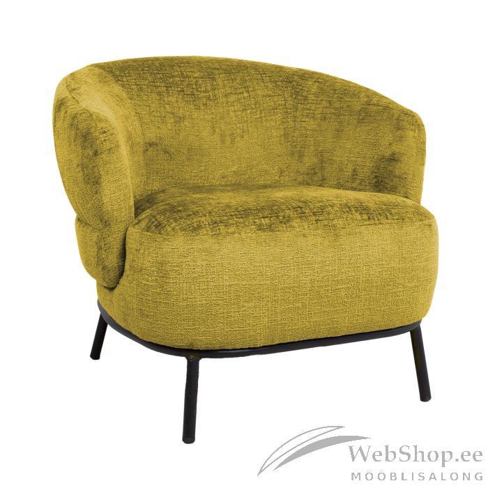 Tugitool GEMALA kollane. Tugitooli pehme polsterdusega iste on kaetud sametise polüesterkangaga, Martindale väärtus 41 000. Tooli karkass on valmistatud puidust ja vineerist. Tooli sees on pocket vedruplokk. Polsterduseks on kasutatud polüuretaanvahtu ja polüesterkiudu. Tooli üldmõõdud on 84x84xH75cm. Istme laius 58cm, istmesügavus 58cm, istme kõrgus 46cm. Käetoe kõrgus maast 64cm. Tugitoolil on mustad metallist jalad H17cm.