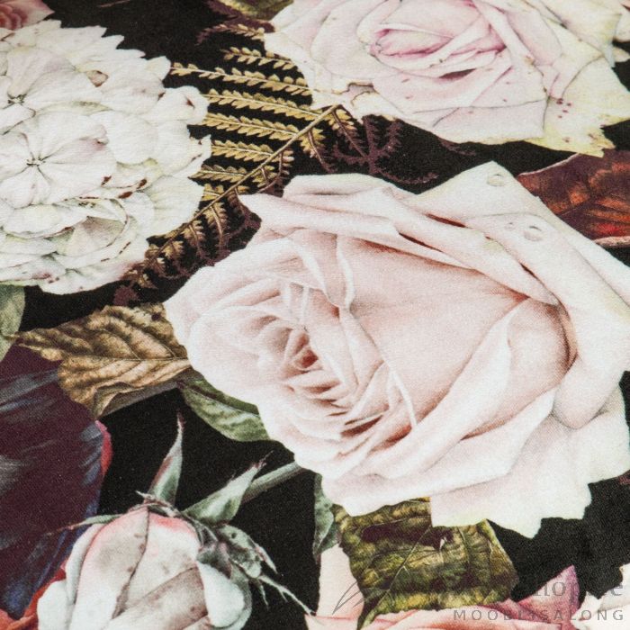 Tugitool LA PERLA lilleline. Tugitool on kaetud roosi mustriga sametkangaga, 100% polüester. Tugitoolil on puitraam ja polüester pehmendus. Tugitooli mõõdud on 63x73xH76cm.