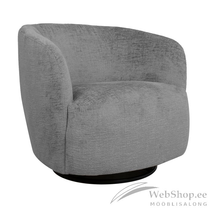 Tugitool MANUELA tumehall. Ümara vormiga 360° pöörlev tugitool on mugav ja funktsionaalne ning sobitub suurepäraselt nii koju kui kontorisse. Istme karkass on valmistatud puidust ja vineerist. Istme sees on pocket vedruplokk. Polsterduseks on kasutatud polüuretaanvahtu ja polüesterkiudu. Kattematerjal on polüesterkangas, Martindale väärtus 41 000. Tooli üldmõõdud on 84x82xH75cm. Istme laius 51cm, istme sügavus 56cm, istme kõrgus 45cm.