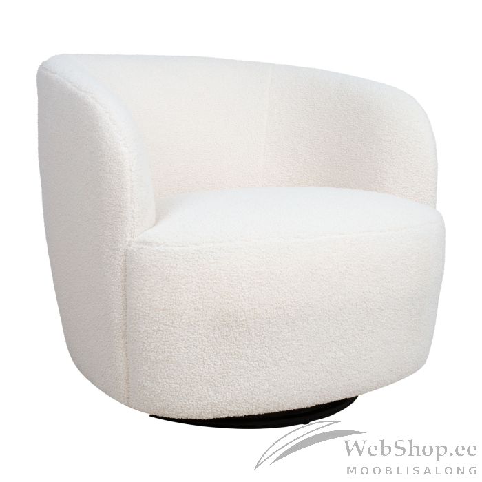 Tugitool MANUELA valge. Ümara vormiga 360° pöörlev tugitool on mugav ja funktsionaalne ning sobitub suurepäraselt nii koju kui kontorisse. Istme karkass on valmistatud puidust ja vineerist. Istme sees on pocket vedruplokk. Polsterduseks on kasutatud polüuretaanvahtu ja polüesterkiudu. Tool on kaetud karvase polüesterkangaga. Tooli üldmõõdud on 84x82xH75cm. Istme laius 51cm, istme sügavus 56cm, istme kõrgus 45cm.