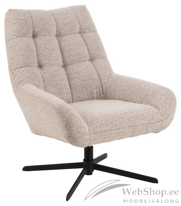 Käetugedega tool on polsterdatud luksusliku beeži bukleekangaga. Tooli kaunistavad ruudukujulised õmblused. Kontrastne must metallist alus. Toolil on sujuv pöörlemisfunktsioon. Toote mõõdud on 73x82xH88cm.
