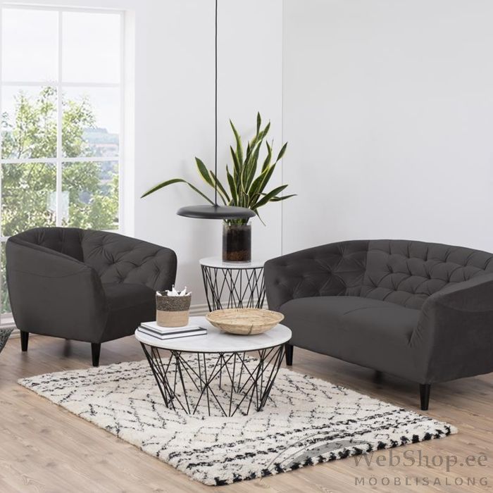 Stiilsel tugitoolil on sametine polsterdus, mida kaunistavad maitsekad dekoratiivsed detailid. Tumehall sametkangas on iseloomulikult pehme ja lisab toolile sügavust. Toolil on pocket-vedrud, mis tagavad suurepärase istumismugavuse. Toolil on puidust jalad. Mõõdud 83x97xH79cm.