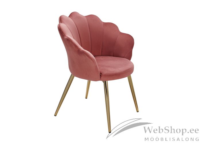 Modernses stiilis tugitool. Tool on roosat värvi tekstiilist. Tooli jalad on kulla tooni metallist. Tooli pehmenduseks on poroloon. Tooli maksimaalne kandevõime on 110kg.