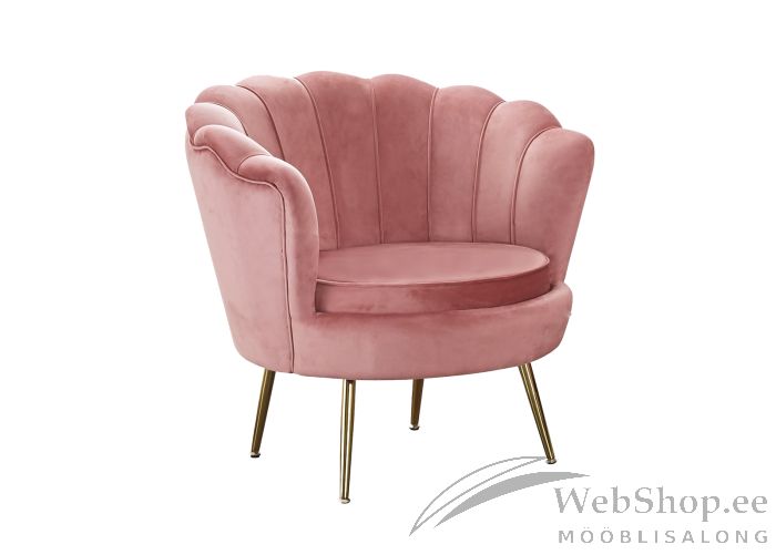 Roosat värvi velvetist kattega merekarpi meenutav tugitool. Tooli jalad on kulla tooni metallist jalad. Tooli pehmenduseks poroloon. Maksimaalne kandevõime 150kg.