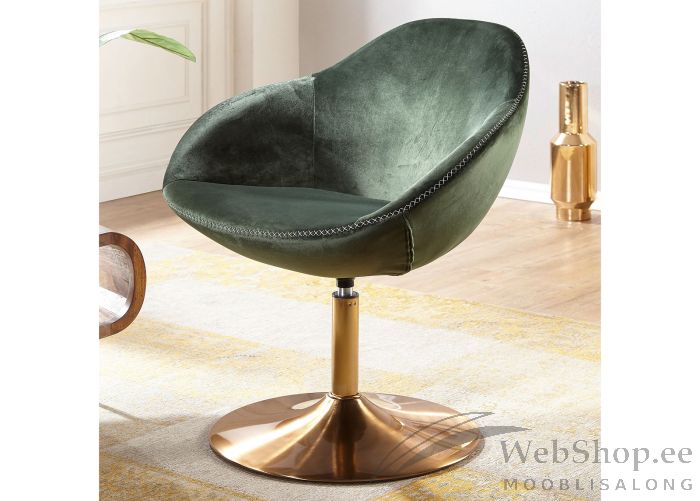 Moodsa disainiga mugav tugitool. Tool on kaetud rohelise tekstiiliga. Tooli jalg on kuldset tooni metallist. Toolil on pehme istumisosa. Tool on pöörlev. Tooli saab kasutada nii tugi- kui ka töötoolina.
