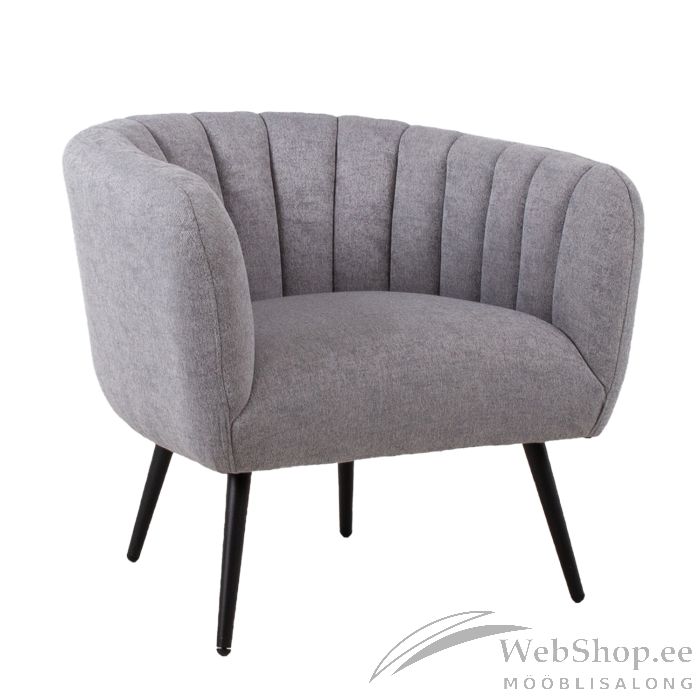 Tugitool TUCKER hall. Tugitool on kaetud halli kangaga. Kattematerjal on 100% polüesterkangas. Tugitoolil on mustad metallist jalad. Toote mõõdud on 78x71xH69cm.