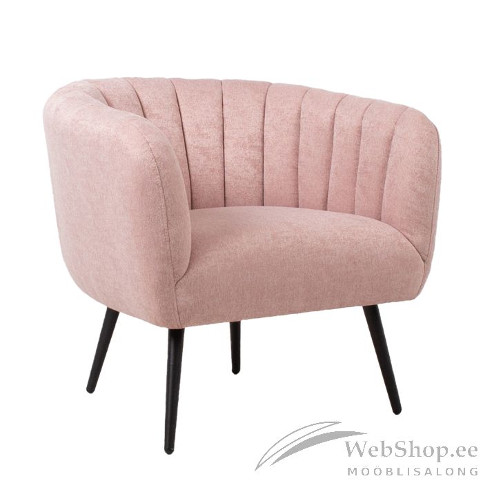 Tugitool TUCKER roosa. Tugitool on kaetud roosa kangaga. Kattematerjal on 100% polüesterkangas. Tugitoolil on mustad metallist jalad. Toote mõõdud on 78x71xH69cm.