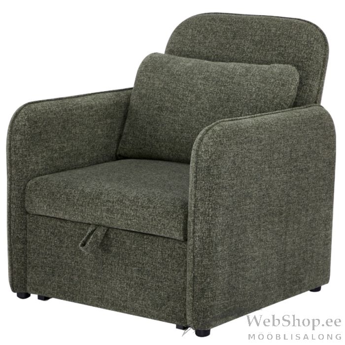 Tugitoolvoodi Lenno on praktiline ja mugav lahendus nii igapäevaseks istumiseks kui ka külaliste majutamiseks. Pehme polsterdus ja lai iste tagavad meeldiva istumismugavuse, samas kui lihtsasti avatav mehhanism võimaldab tooli kiiresti voodiks muuta. Kompaktne disain ja neutraalne rohekas toon sobivad hästi erinevatesse interjööridesse, pakkudes stiili ja funktsionaalsust üheskoos.