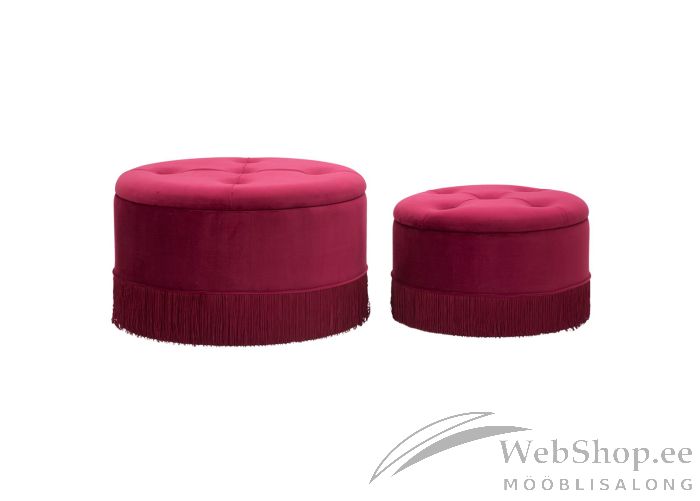 Stiilne bordoo värvi tekstiilist kattega tumbade komplekt. Komplekti kuulub 2 tumbat. Tumba raam on puidust. Pehmenduseks poroloon. Mõlemal tumbal on panipaik.