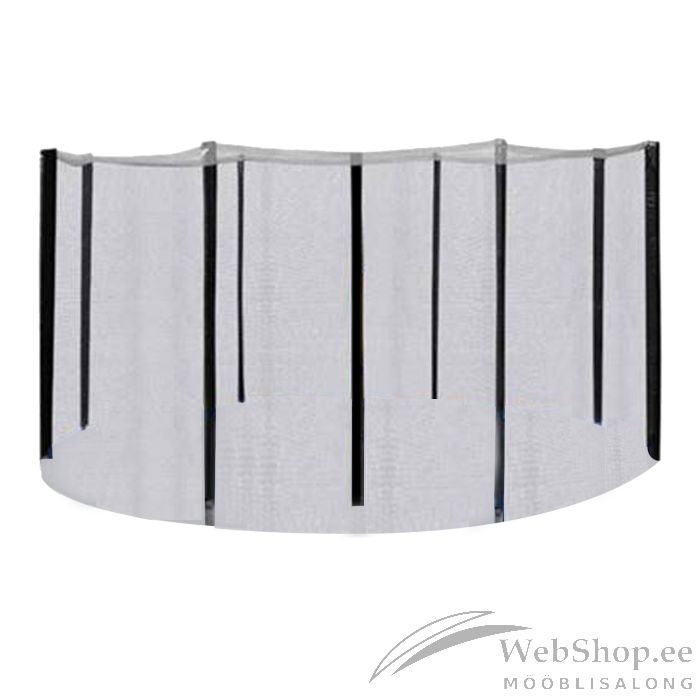 Turvavõrk postidega batuudile D426cm must. Turvavõrk on valmistatud musta värvi polüestervõrgust, millel on tõmblukuga uks. Tootel on galvaniseeritud raam ning komplekti kuuluvad kaheksa posti, mille ümber on EPE pehmendus. Võrgu üldine kõrgus on 268cm ning kõrgus batuudi äärest on 180cm. Turvavõrk on sobiv batuudile koodiga 09413, mille diameeter on 426cm. HOIATUS: toode ei ole mõeldud kasutamiseks tugeva tuule ja vihma korral. Müüja ei vastuta ekstreemsetest ilmastikutingimustest tulenevate kahjude eest.