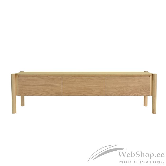 TV laud GARDENIA 3-sahtliga 183x43xH50,5cm, tamm. TV laua raam ja küljepostid on valmistatud kummipuust. Korpus ja sahtlite esipaneelid on valmistatud mööbliplaadist ja kaetud naturaalse tammespooniga.
