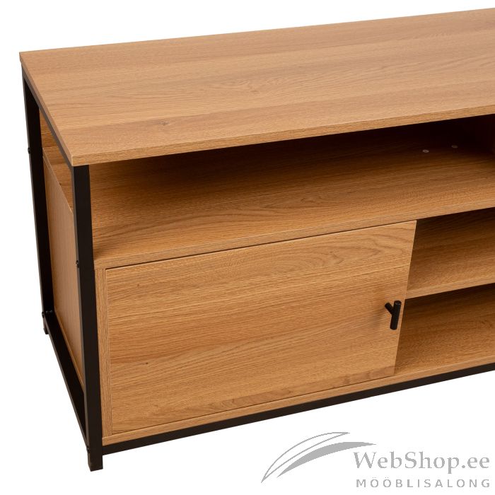 TV laud STUDY 150x40xH54cm, tamm/must. Korpus ja uksed: tamme dekooriga melamiinplaat. Raam on valmistatud metallist ja viimistletud musta pulbervärviga.