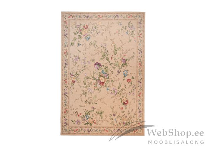 Masinkootud lillemotiiviga vaip. Materjal: 63% polüester, 27% polüpropüleenkiud, 10% puuvillakiud. Sobib põrandaküttega põrandale. Toodetud Belgias.