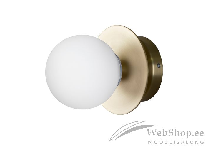 Valge klaasist kupli ja harjatud messingu toonis metallist raamil seinalamp. Konkskinnitus. Lampi on võimalik kasutada ka laelambina. Lambile sobib elektripirn max 8W, sokliga G9. Valgusallikas ei kuulu komplekti. Rootsi disain.