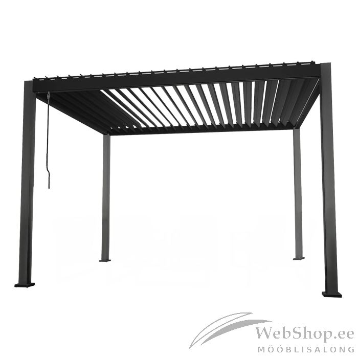 Varikatus MIRADOR 3x4xH2,5m, tumehall. Kaasaegne, elegantne ja funktsionaalne varikatus / aiapaviljon sobib kõikjale - aeda, terrassile, basseini äärde või hoopis auto varjualuseks ja see on kasutatav aastaringselt. Uuenduslik lamellkatus on vändaga avatav ja suletav ning pakub kaitset ja varju nii kerge vihma, kui kõrvetava päikese eest. Suletud lamellidega katus on veekindel. Tänu sisse ehitatud vihmaveesüsteemile juhitakse vesi ohutult katuselt ära. Lisavarustusena on võimalik valida juurde sobivat tüüpi seinad või kardinad, andes sel viisil varikatusele erineva ilme ja funktsionaalsuse. Seinad ja kardinad ei kuulu komplekti, need on võimalik eraldi juurde tellida. Varikatuse põhikonstrukstioon on valmistatud alumiiniumist ja viimistletud tumehalli pulbervärviga. 4 tugiposti 111x111mm, horisontaaltala 140x75mm, galvaniseeritud terasest katuselamellid 173x30mm. Paigaldage varikatus stabiilsele ja tasasele aluspinnale ja kinnitage korralikult. Juhul, kui kasutate varikatus aastaringselt, jälgige, et katusele ei koguneks liigselt lund. Eemaldage kogunenud lumi esimesel võimalusel.