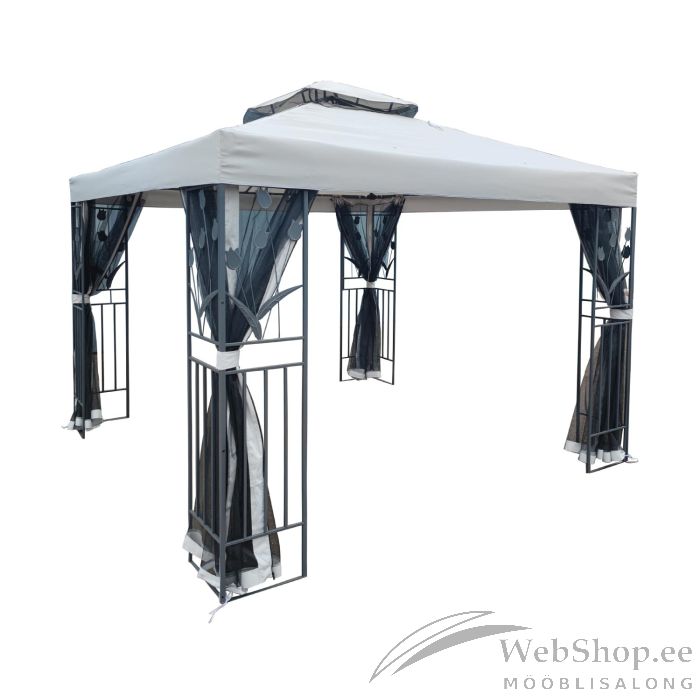 Varikatus TULIP 3x3m, hall. Varikatus pakub meeldivat varju nii kuuma päikese, kui jaheda tuule eest ning võimaldab nautida õues olemist ilmast ja kellaajast olenemata. Varikatuse põhikonstruktsioon on valmistatud terasest ja viimistletud halli pulbervärviga. Raami 4-kanttorude mõõdud on 14x20mm / 15x15mm. Katus on valmistatud hallist polüesterkangast 180g/m². Varikatuse juurde kuuluvad mustad lukkudega suletavad sääsevõrgud. HOIATUS: ajutise paigaldisena disainitud kergkonstruktsiooniga varikatus ei ole mõeldud kasutamiseks tugeva tuule ja vihma korral ning seda ei tohi jätta järelevalveta ebasoodsate ilmastikutingimuste meelevalda. Katus on valmistatud väga hea ilmastikukindlusega materjalidest, kuid see ei ole vettpidav. HOIUSTAMINE: toote eluea pikendamiseks soovitame see talvehooajaks lahti monteerida ja hoiustada kuivas ning hea ventilatsiooniga ruumis. Puhastage ja kuivatage katus ja küljeseinad enne hoiule panekut.
