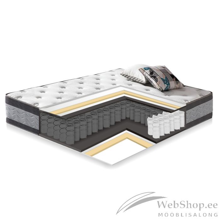 Vedrumadrats HARMONY DUO NEW 160x200cm. PERFECT SLEEP BY HOME4YOU. Kahepoolsel keskmise jäikusega ja käepidemetega madratsil on pakitud deluxe-pocket vedrustus (1,9mm/äärtes 2,2mm). Hele stretch-kangast madratsikate on nahasõbralikust ja pehmest puuvilla-polüestrist (kangakaal 280g/m2). Madrats on pehmendatud kahe erineva kvaliteetse ja vastupidava poroloonikihiga, mis tagavad nii lihaste kui luustiku maksimaalse lõdvestuse. Kangas, vilt ja vatiin vastavad rahvusvahelisele Öko-Tex 100 standardile. Madrats on pakitud rulli, et seda oleks lihtsam transportida. Madrats vajab oma esialgse kuju taastamiseks kuni 2 tundi aega. Eemaldage ettevaatlikult kilepakend ja asetage madrats voodi peale. Toote mõõdud on 160x200xH27cm.