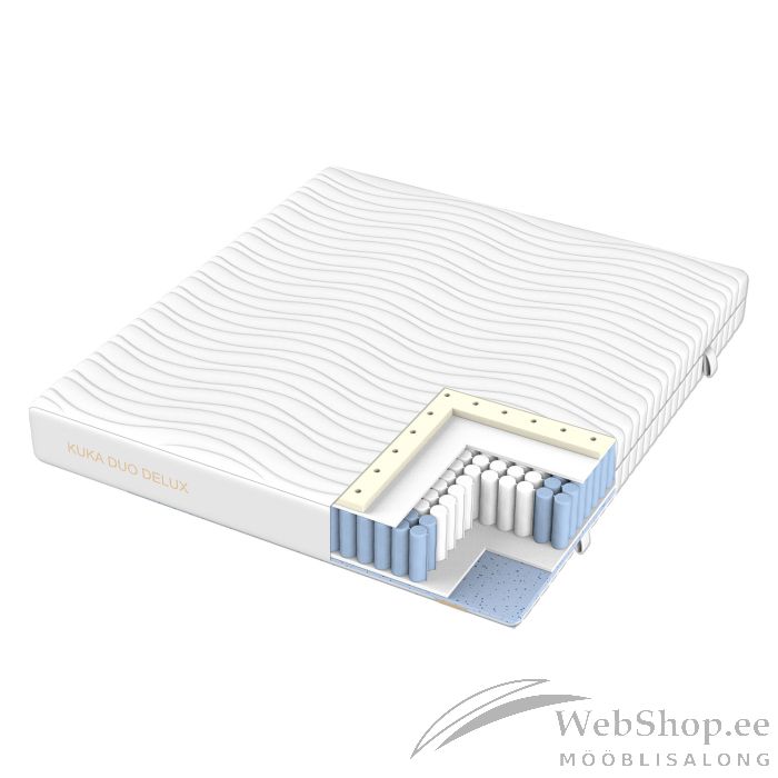 DELUXE-pakitud vedrud 2,0mm, kõrgus 18cm. Tugevdatud vedrustus servades 2,2mm.