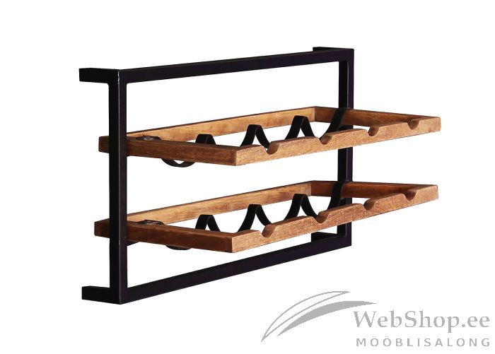 Naturaalsest mangopuidust ning musta värvi metallist veiniriiul kaheksale pudelile.