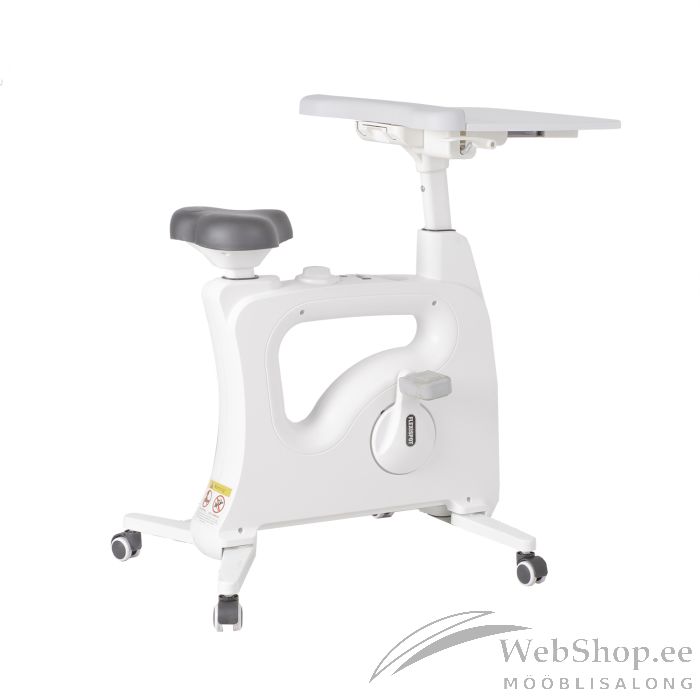 Velotrenažöör ERGO töölauaga. Multifunktsionaalne velotrenažöör töölauaga võimaldab olla aktiivne ja tervislik ka väheliikuvat kontoritööd tehes. ERGO kohandub töötamiseks istudes, seistes või aktiivselt liikudes. Ruumika töölaua kõrgus ja kaugus on reguleeritavad. Laua mõõdud 58x50cm. Istme kõrgus on reguleeritav gaasamordi abi vahemikus 19cm. Kaalutundlikud 360° pöörlevad rattad lukustuvad automaatselt ning tagavad trenažööri mugava ning ohutu kasutamise. Ilma koormuseta liiguvad rattad vabalt ning töökoha asukohta ruumis on lihtne muuta. Kahesuunaline rattamehhanism töötab vaikselt ja sujuvalt. Magnetiline pidurdussüsteem, 8 koormusrežiimi ja LCD ekraan võimaldavad kasutamise ajal intensiivsust optimaalselt reguleerida ja jälgida. ERGO on kohandatav kasvule 155-190cm. Üldmõõdud 58x75xH115,5-120cm, sadula kõrgus 81,5-93cm. Toote kaalupiirang on 135kg.