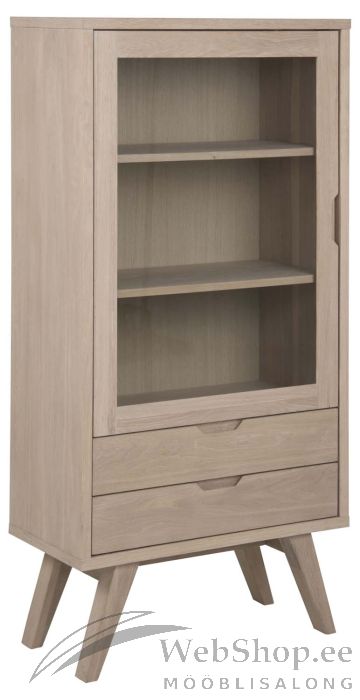 Vitriinkapp esindab klassikalist Skandinaavia disaini kaasaegses võtmes. Sale profiil annab sellele kaasaegse ilme. Kapil on 2 sahtlit ja 2 reguleeritavat riiulit läbipaistva klaasukse taga. Seal on võimalik hoida olulisi esemeid korrastatuna ja tolmu eest kaitstuna. Kapp on valmistatud valge pigmendiga õlitatud tammest ja tammespoonist, mis loob puhta välimuse. Mõõdud 72x36xH145cm.