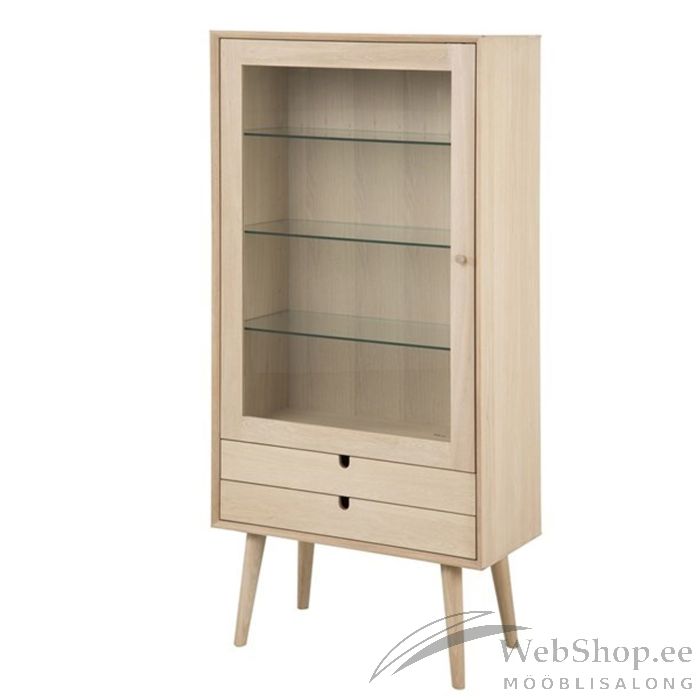 Skandinaavia disainist inspireeritud vitriinkapp on moodne klassika. Vitriinkapil on 2 sahtlit ja 3 riiulit, mis asuvad klaasuste taga. Valmistatud valge pigmenteeritud tamme ja tammespooni viimistlusega. Disain on nii praktiline kui ka esteetiliselt meeldiv. Toote mõõdud on 72x36xH143,2cm.